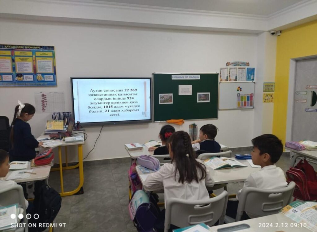 Кеңес әскерлерінің Ауғанстан жерінен шығарылғанына 35 жыл толуына орай, Талғат Нусупбаев атындағы мектебінде 1-6 сынып оқушылары арасында бірыңғай сынып сағаттары өткізілді.