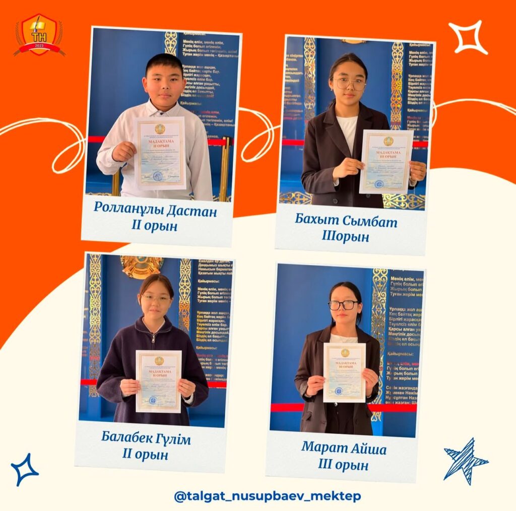 Жалпы білім беретін пәндер бойынша 7-8 сынып оқушыларына арналған Республикалық олимпиадасының аудан деңгейінде өз білімін көрсете білген оқушыларымыз арнайы мақтау қағаздарымен марапатталды.