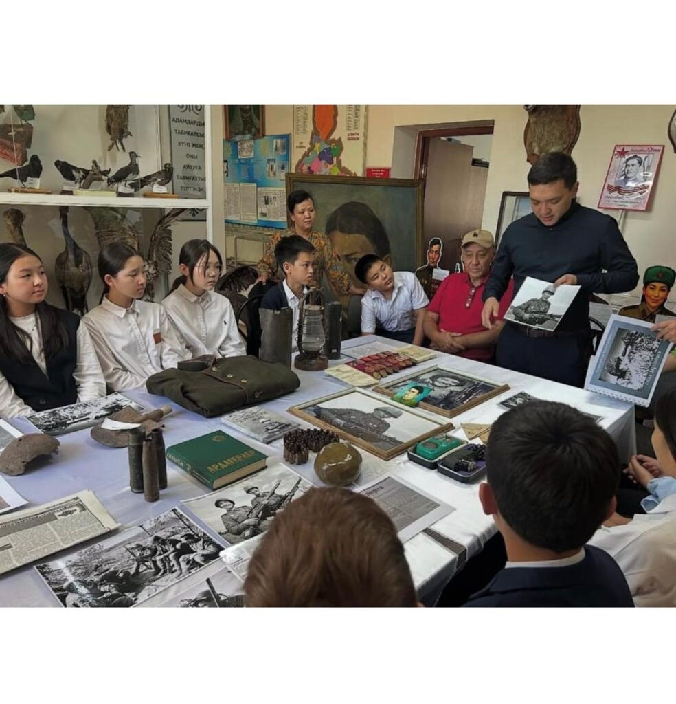 Аудандық музейде Ұлы Жеңістің 80 жылдығына орай Отан үшін от кешіп, ерлігімен ел есінде қалған сұрмерген, 316-шы атқыштар дивизиясының жауынгері, халқымыздың қаһарман ұлы – Әбіл Нүсіпбаевтың ерлік жолына арналған «Құралайды көзге атқан» атты тағылымды кездесу өтті. Іс-шараға батырдың немерелері – Нүсіпбаев Мұрат Бақтыбайұлы мен Нүсіпбаев Бауыржан Саматұлы шақырылды. Сонымен қатар Т.Нүсіпбаев атындағы негізгі мектептің 7 «А» сынып оқушылары да қатысып, рухани шарадан мол әсер алды. Кездесу барысында алғаш сөз алған Мұрат Бақтыбайұлы атасының жастық шағы мен соғысқа дейінгі өмірі, отбасы жайлы әңгімелеп, туған жеріне, елінің тыныштығына адал болған азамат туралы тың деректермен бөлісті. Ал Бауыржан Саматұлы батыр атасының майдандағы ерліктерін, мергендік мектебін, жауынгерлік тағдырын кеңінен баяндап, жүрекпен жеткізді. Әсіресе, Бауыржан мырзаның архивтік деректерге сүйене отырып жасаған мазмұнды баяндамасы мен тарихи шындыққа негізделген естеліктері оқушылардың көңілінен шығып, зор әсер қалдырды. Ол Әбіл Нүсіпбаевтың шынайы бейнесін жас ұрпаққа таныстыра білді.